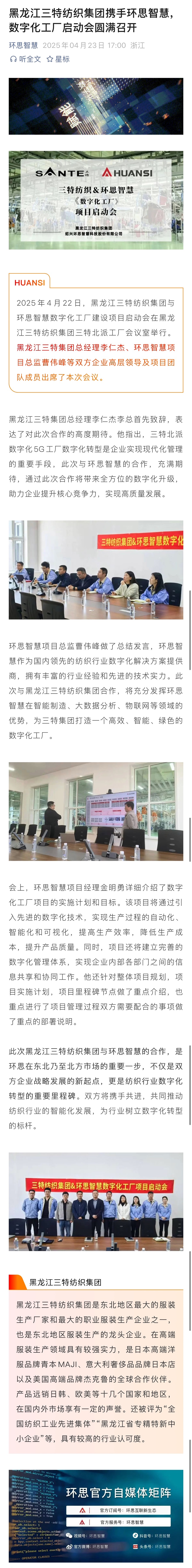 黑龙江三特纺织集团携手环思智慧,数字化工厂启动会圆满召开